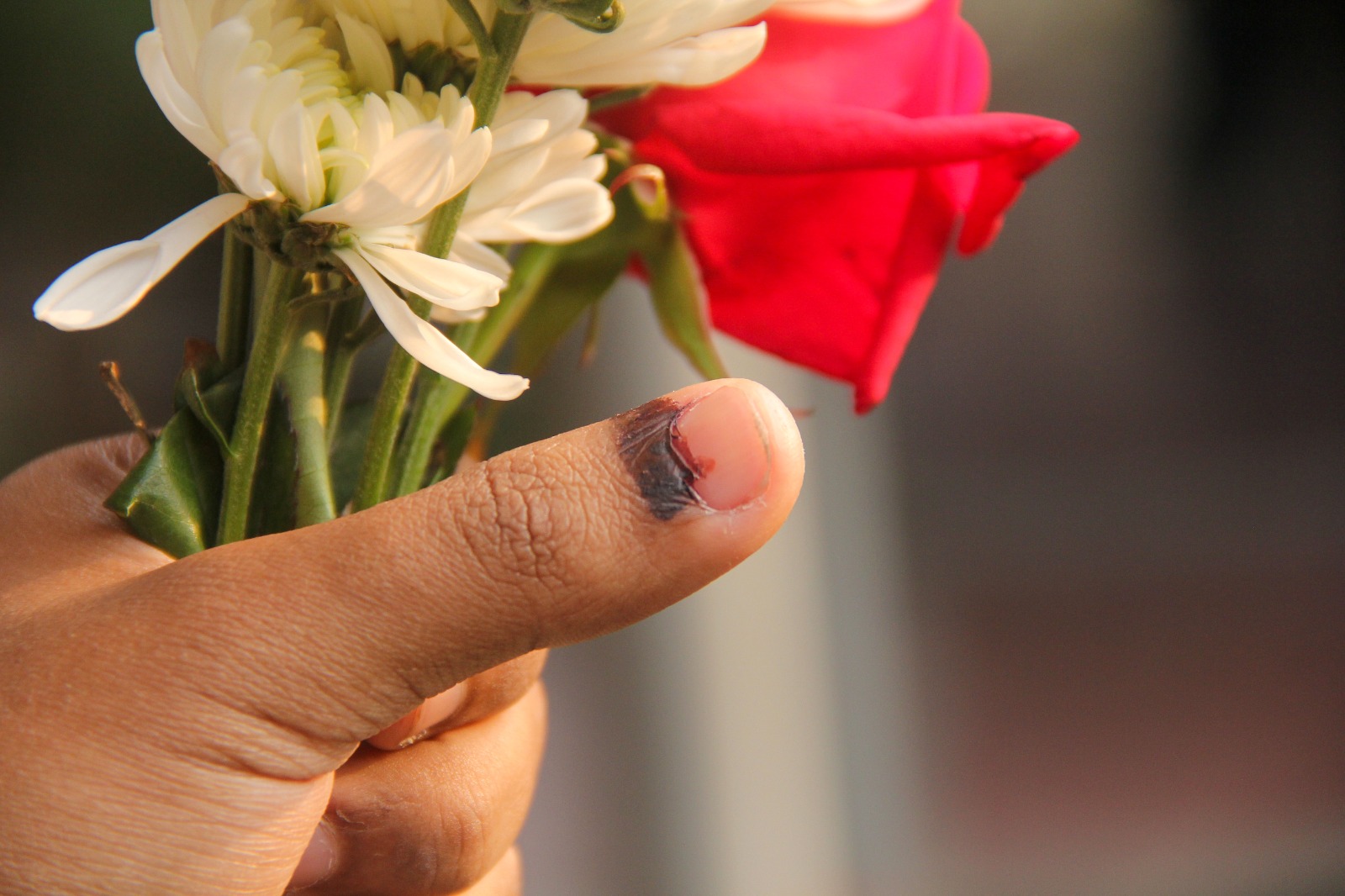ভোটের পরদিন ফুল হাতে এক তরুণ।