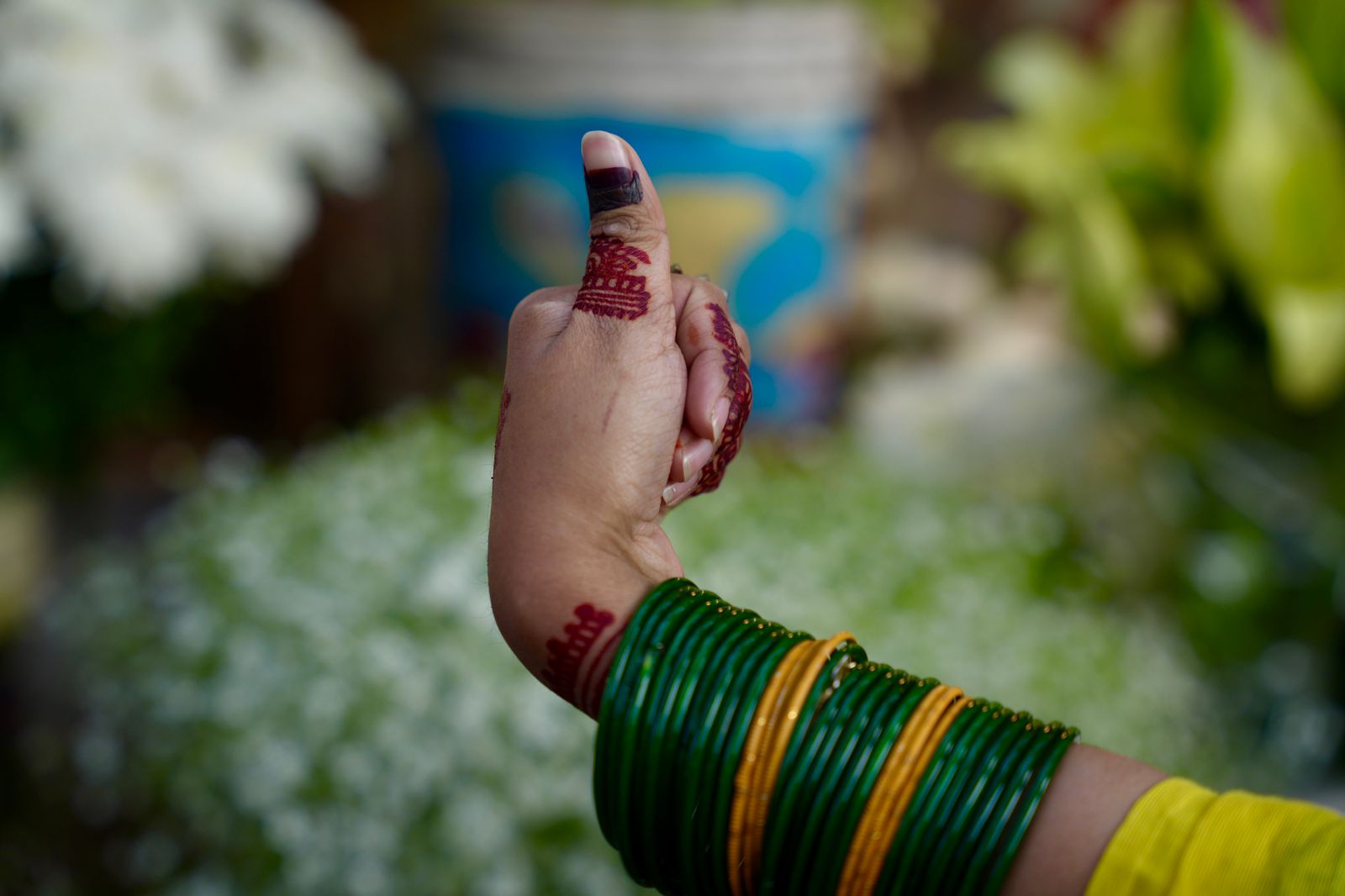 ভোট দেওয়া শেষে উচ্ছ্বসিত দুই নারী। ১২ ফেব্রুয়ারি ২০২৬
